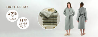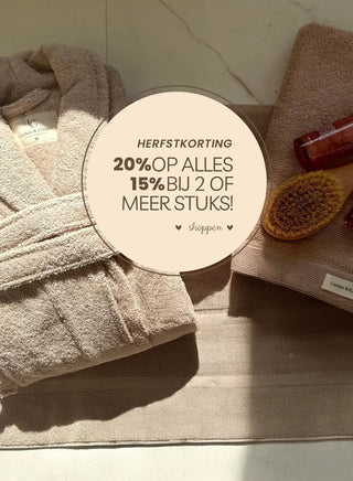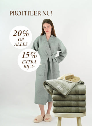 Let op: door de natuur van katoen kan er bij de eerste wasbeurt een natuurlijke krimp optreden: badstof badjassen 3–5%, wafel badjassen 6–8%.