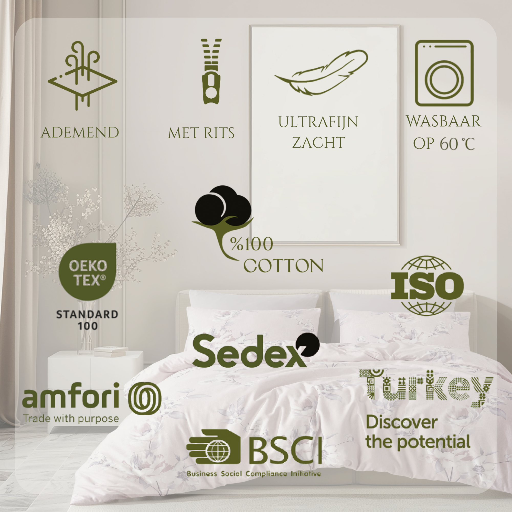 100% premium Turks katoen, ademend en huidvriendelijk